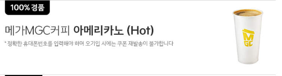 - 100% 경품 : 메가MGC커피 아메리카노(Hot) 경품 응모모든 고객께 지급