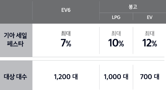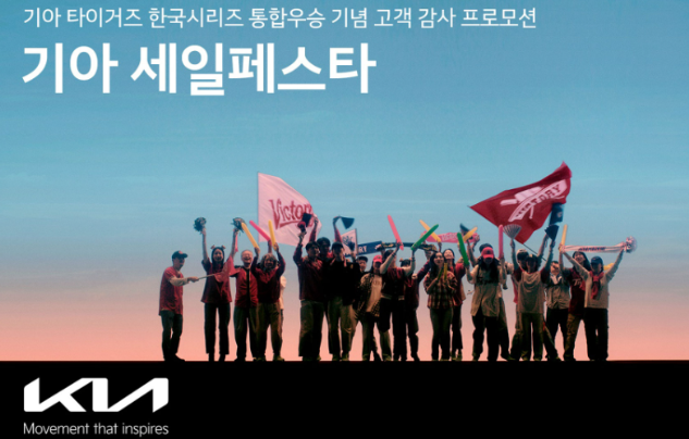 기아가 프로야구(KBO) 구단 ‘기아 타이거즈’의 12번째 한국시리즈 우승을 기념해 11월 30일까지 기아세일페스타를 실시합니다. 총 8개 차종을 대상으로 특별 할인 혜택을 제공하며, 최대 12% 할인에 총 5000대 한정으로 선착순 수량소진 시 조기 마감된다고 하니, 빠르게 혜택 확인하시기 바랍니다.