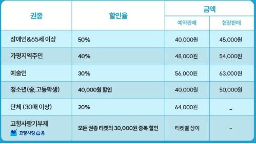 - 현장 판매: 일반 1일권 90,000원/ 청소년 1일권 40,000원