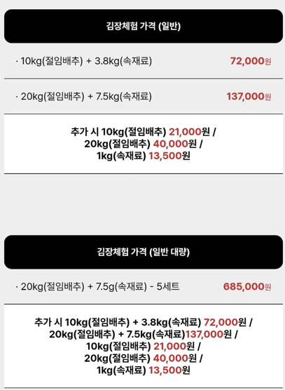 20kg(절임배추) + 7.5kg(속재료): 137,000원
