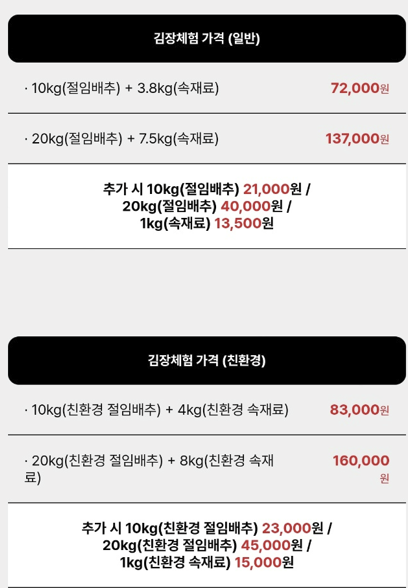 20kg(친환경 절임배추) + 8kg(속재료): 160,000원