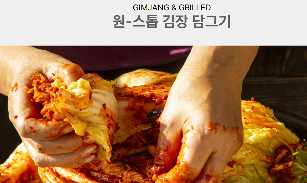 김치 담그기부터 운반까지 한 번에 해결하는 원-스톱 서비스로 사전 예약 후, 체험 1시간 30분 동안 전문적인 설명과 함께 맛있는 김치를 직접 만드실 수 있습니다. 행사 종료 후에는 전동카트를 이용해 차량까지 안전하게 김치를 옮겨 드립니다.